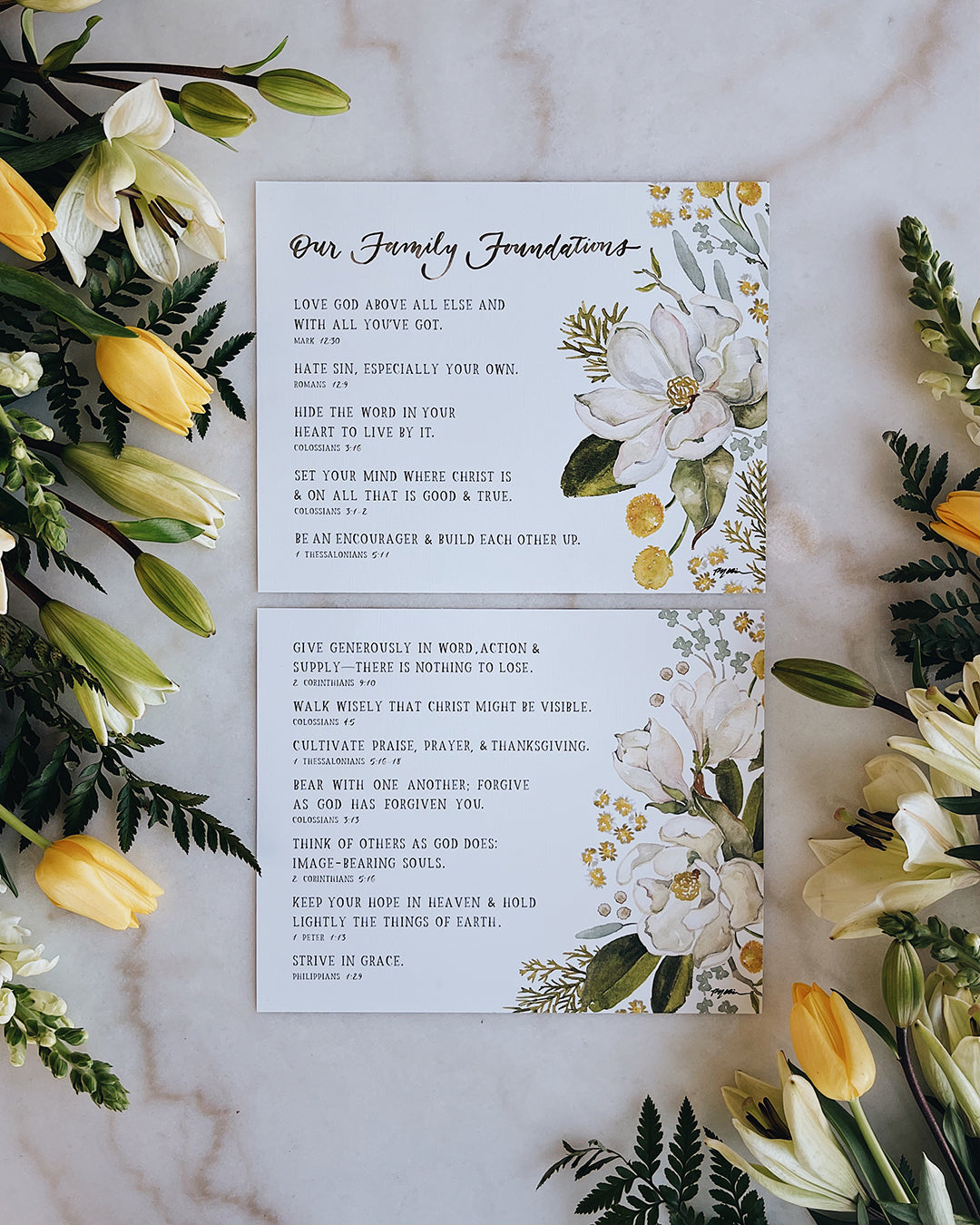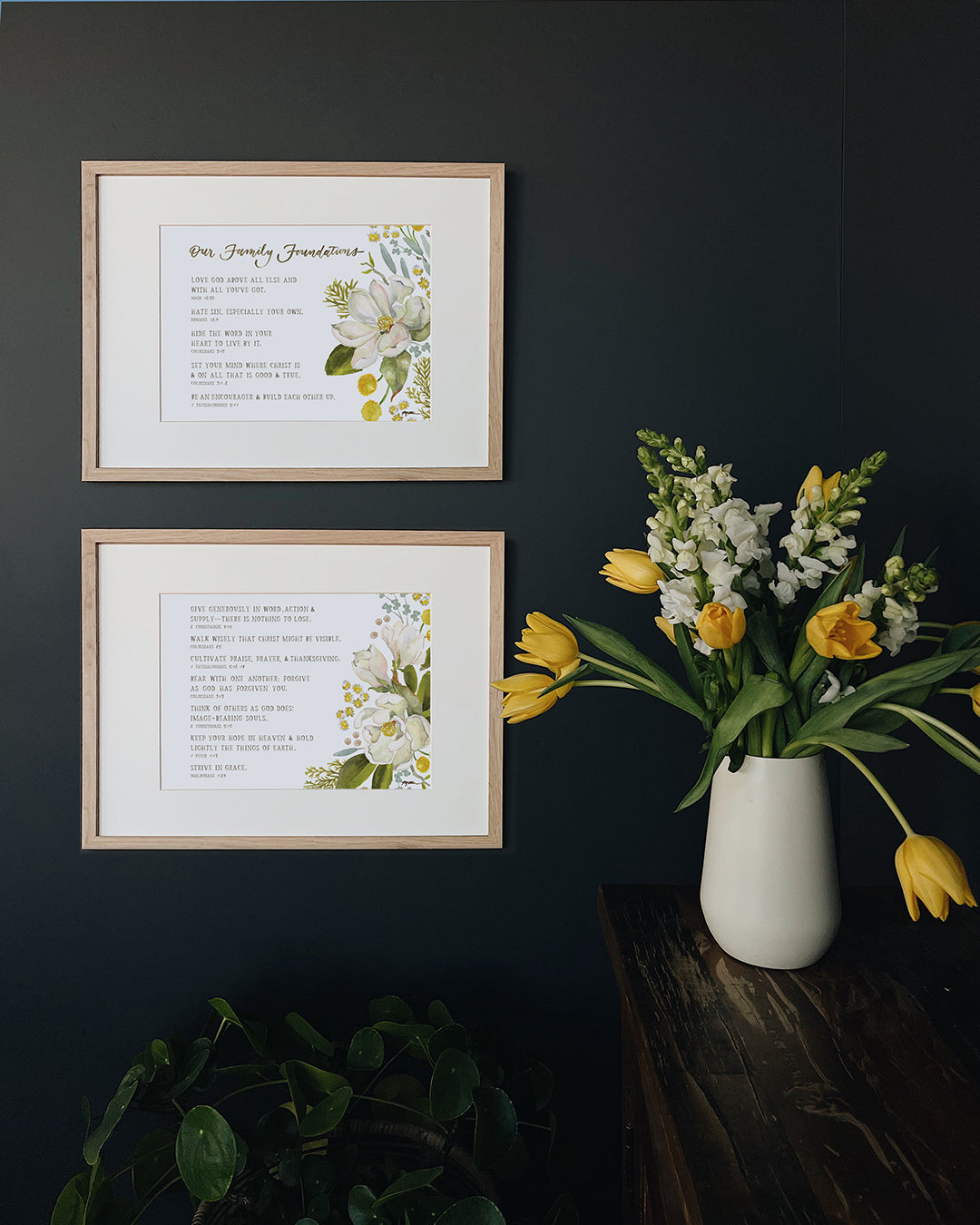 Purchase this special 2-piece diptych of family foundations based on verses from the Bible. Frame the set for a special place in your home and reflect upon them with your family.