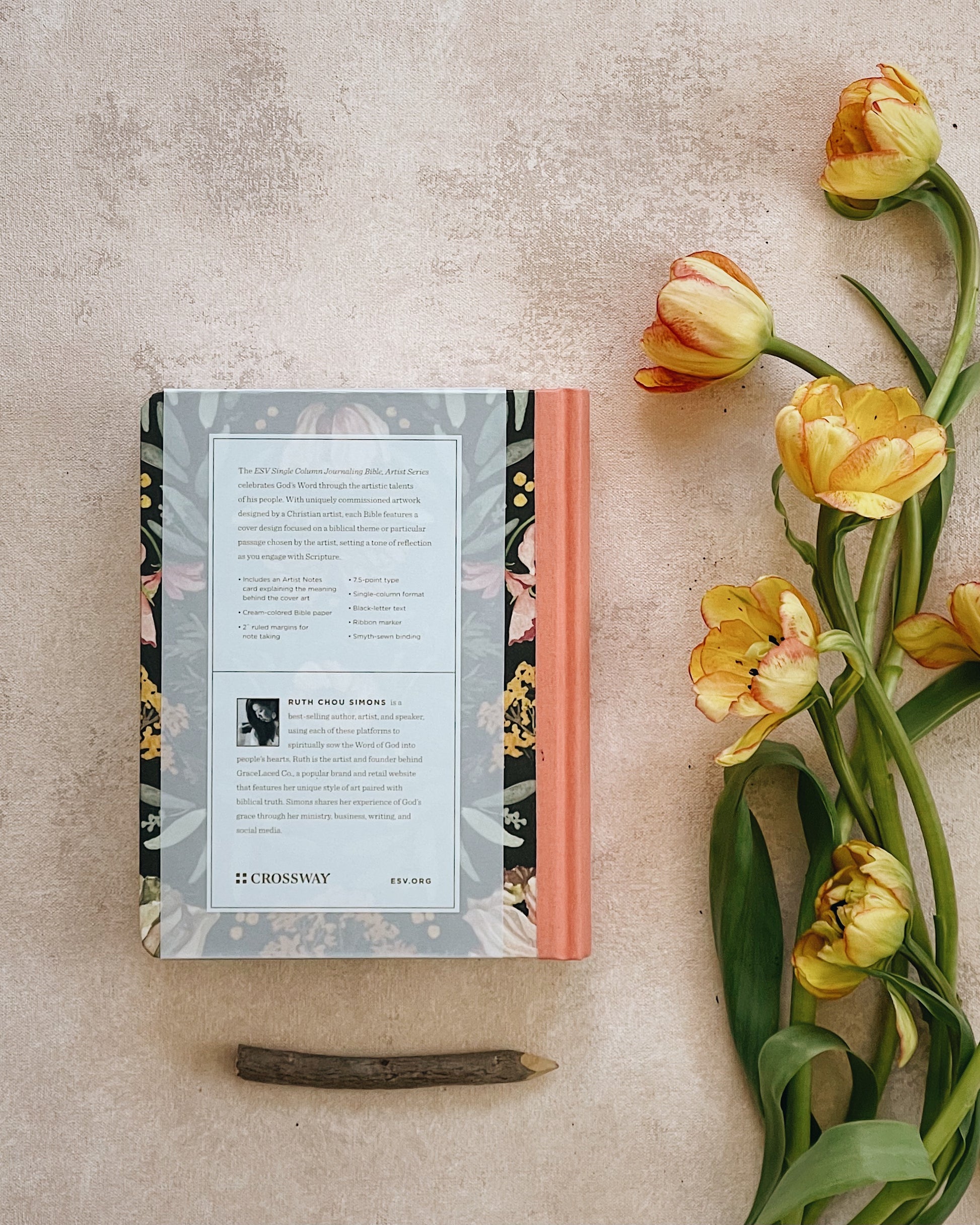The ESV Single Column Journaling Bible, Artist Series is a collection of journaling Bibles meant to celebrate the treasure of God’s Word through the artistic talents of his people. This Bible features commissioned cover artwork designed by Ruth Chou Simons, offering a visual entry point focused on a particular biblical theme or passage, setting a tone of reflection as readers engage with the Bible.