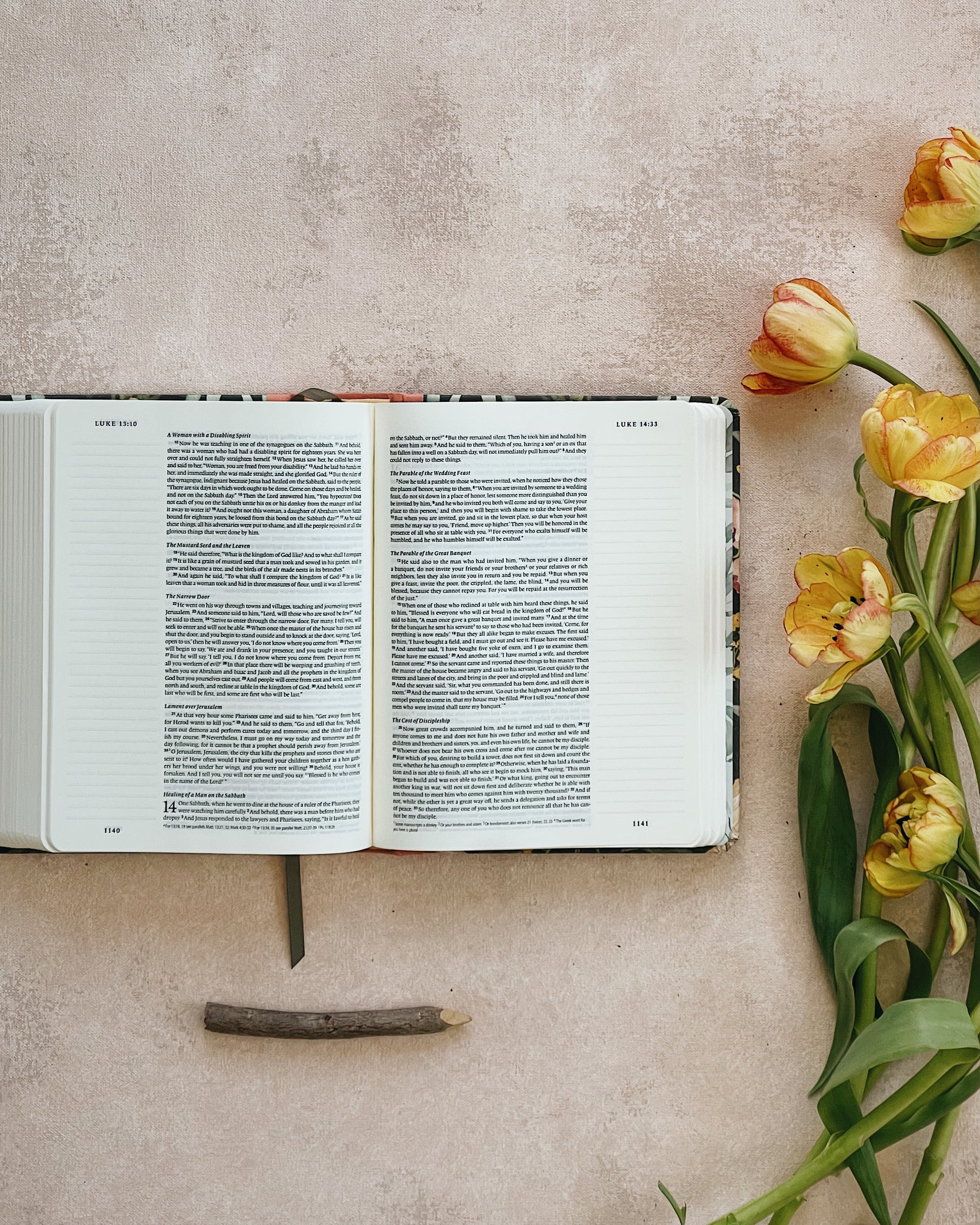 This decorative hardcover Bible retains the features of the original ESV Single Column Journaling Bible, such as cream-colored paper, a single-column page layout, and lines in the margin for note taking. These features coupled with captivating cover artwork make each Bible conducive to creative engagement with God’s Word.