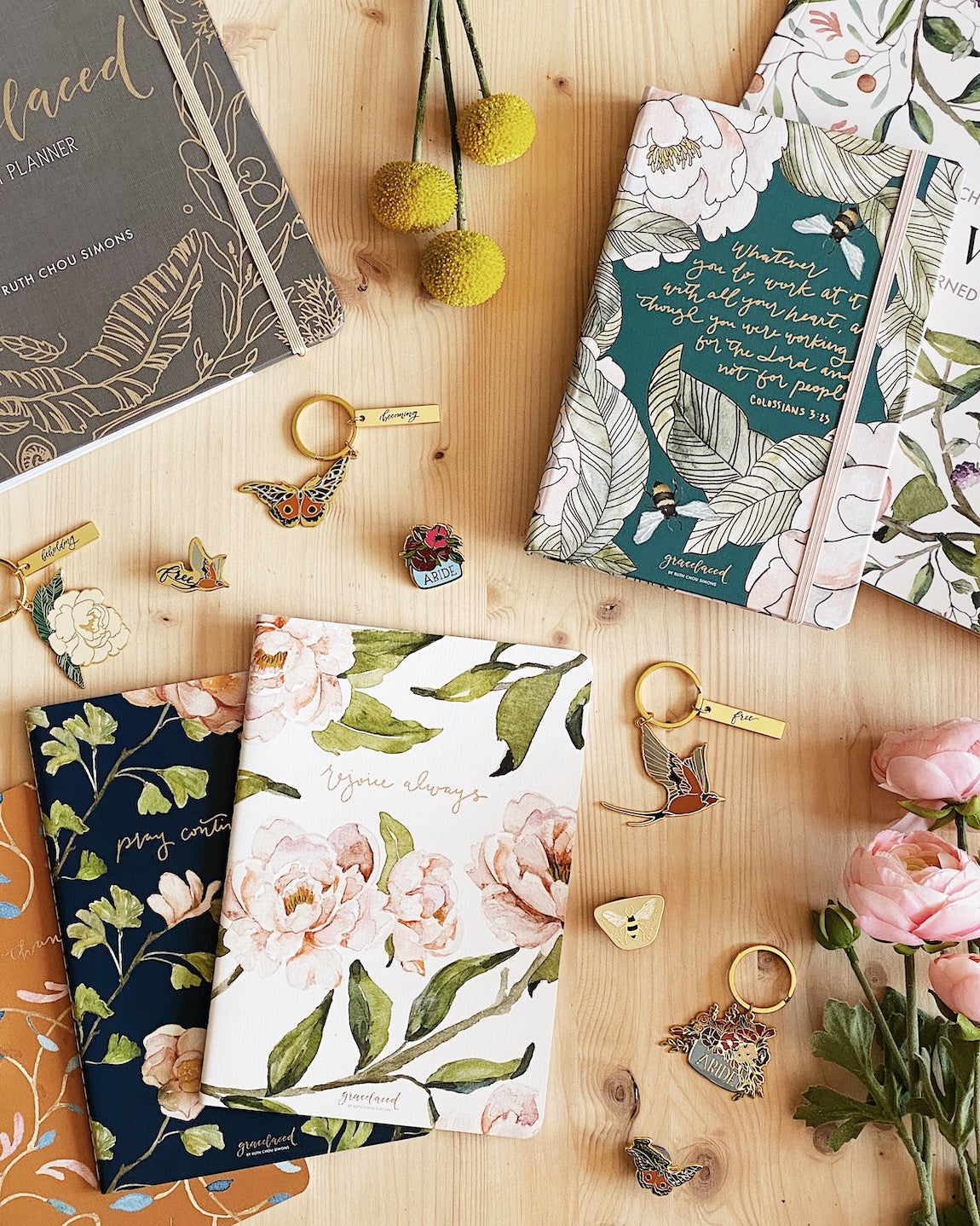 This hardcover folio features a convenient inside pocket, a notepad, and an elastic band closure. The cover is a reproduction of original hand painted, hand lettered watercolor paintings by Ruth Chou Simons. This item has been produced in partnership with Harvest House Publishers.