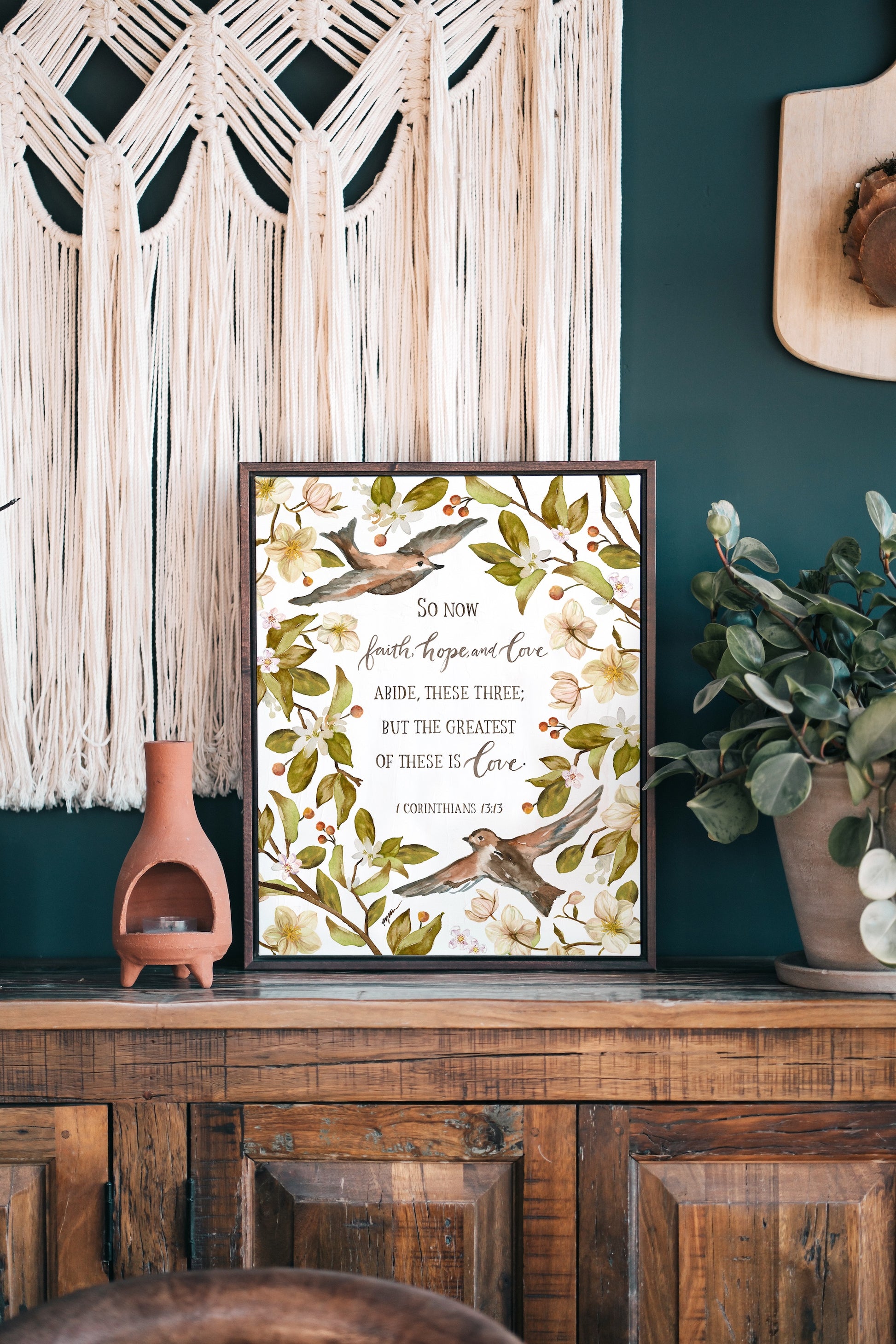 Bring the reminder of love into your home with this 1 Corinthians canvas, featuring stunning watercolor artwork by Ruth Chou Simons. This high-quality canvas is designed to inspire and encourage, reminding us to abide in faith, hope, and love.