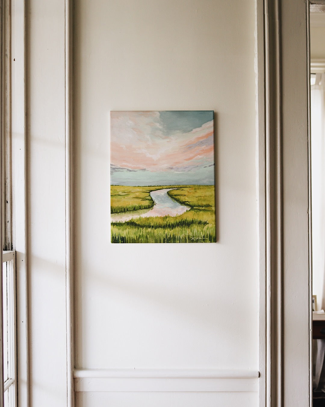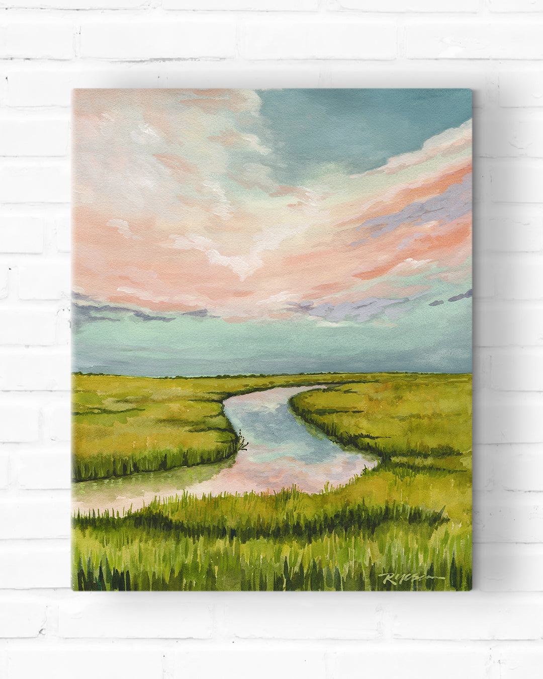 This is a canvas reproduction of an original watercolor painting by Ruth Chou Simons. High resolution images are printed on professional quality gallery-wrapped canvases with a hardwood frame. They come ready to hang and do not require framing. Ships two weeks from order date.