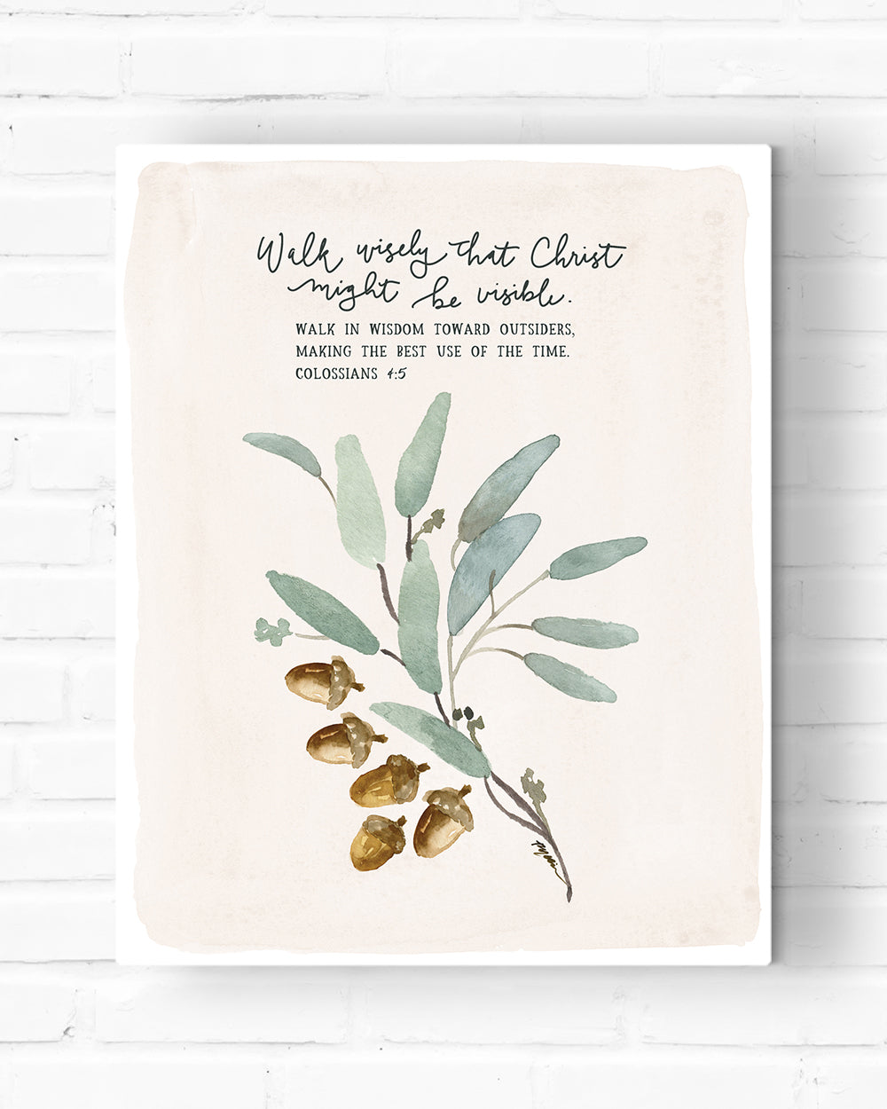 This reproduction of an original hand painted, hand lettered watercolor painting by Ruth Chou Simons is printed on a professional quality gallery-wrapped canvas with solid backing. It comes ready to hang and does not require framing.
