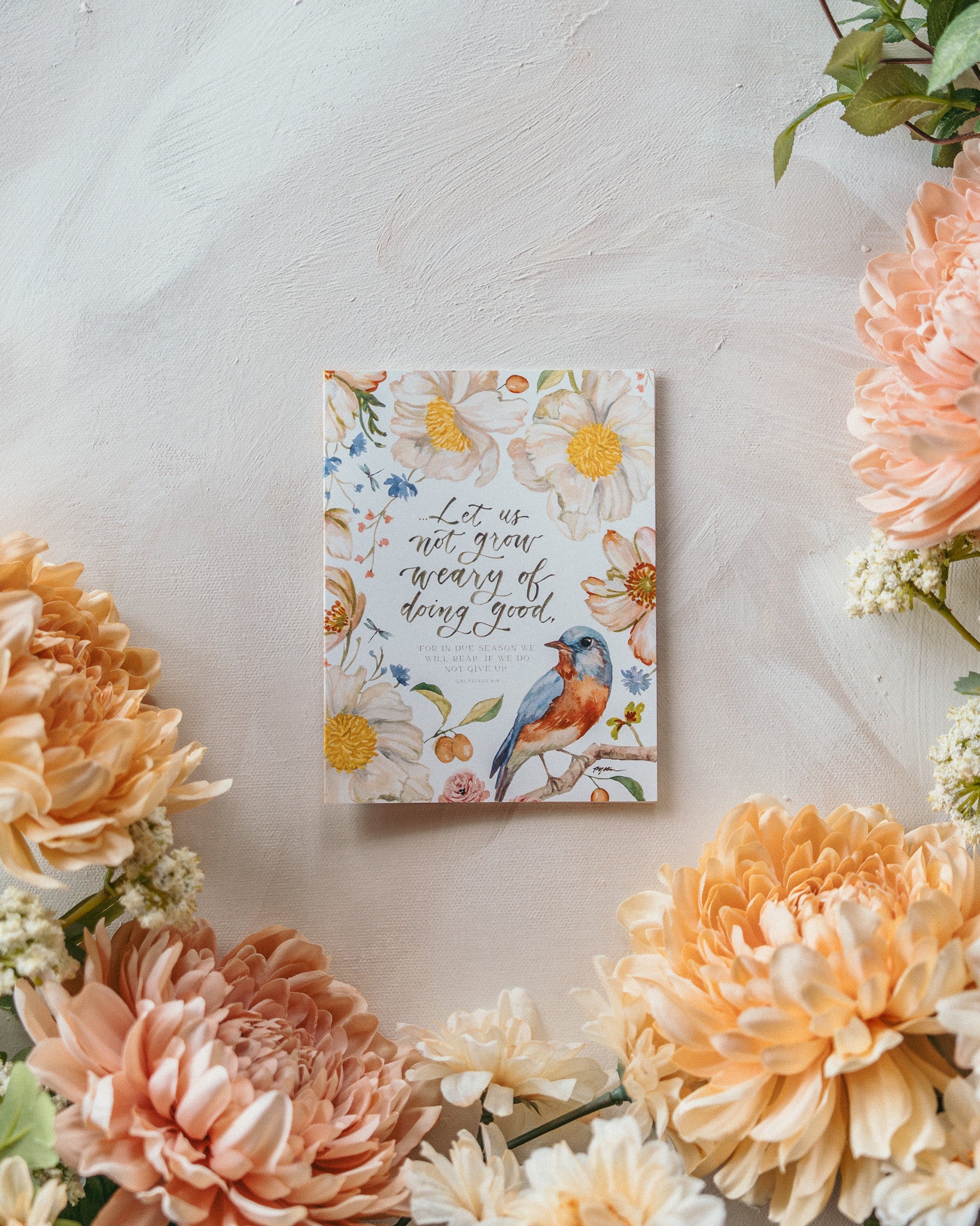 Featuring beautiful artwork by Ruth Chou Simons, the Galatians 6:9 | Let Us Not Grow Weary Notecard Set is the perfect way to encourage a friend to keep pressing into the Lord.