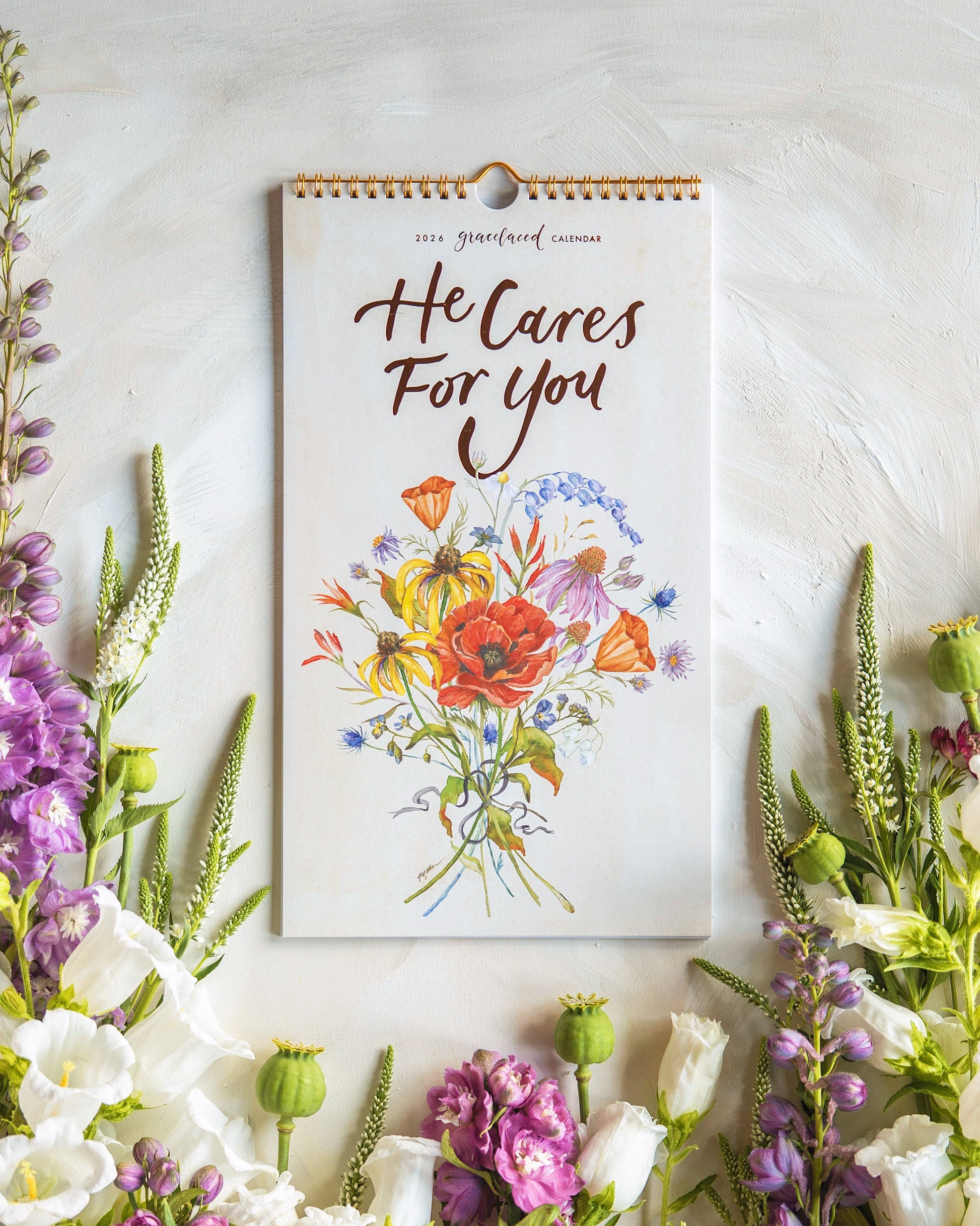 Lean in with the 'He Cares For You' 2026 Calendar, a 3-in-1 Scripture Memory Keepsake