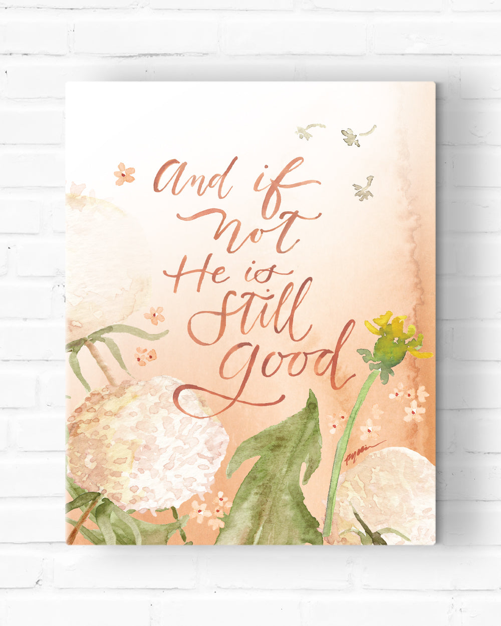 This reproduction of an original hand painted, hand lettered watercolor painting by Ruth Chou Simons is printed on a professional quality gallery-wrapped canvas with solid backing. It comes ready to hang and does not require framing.