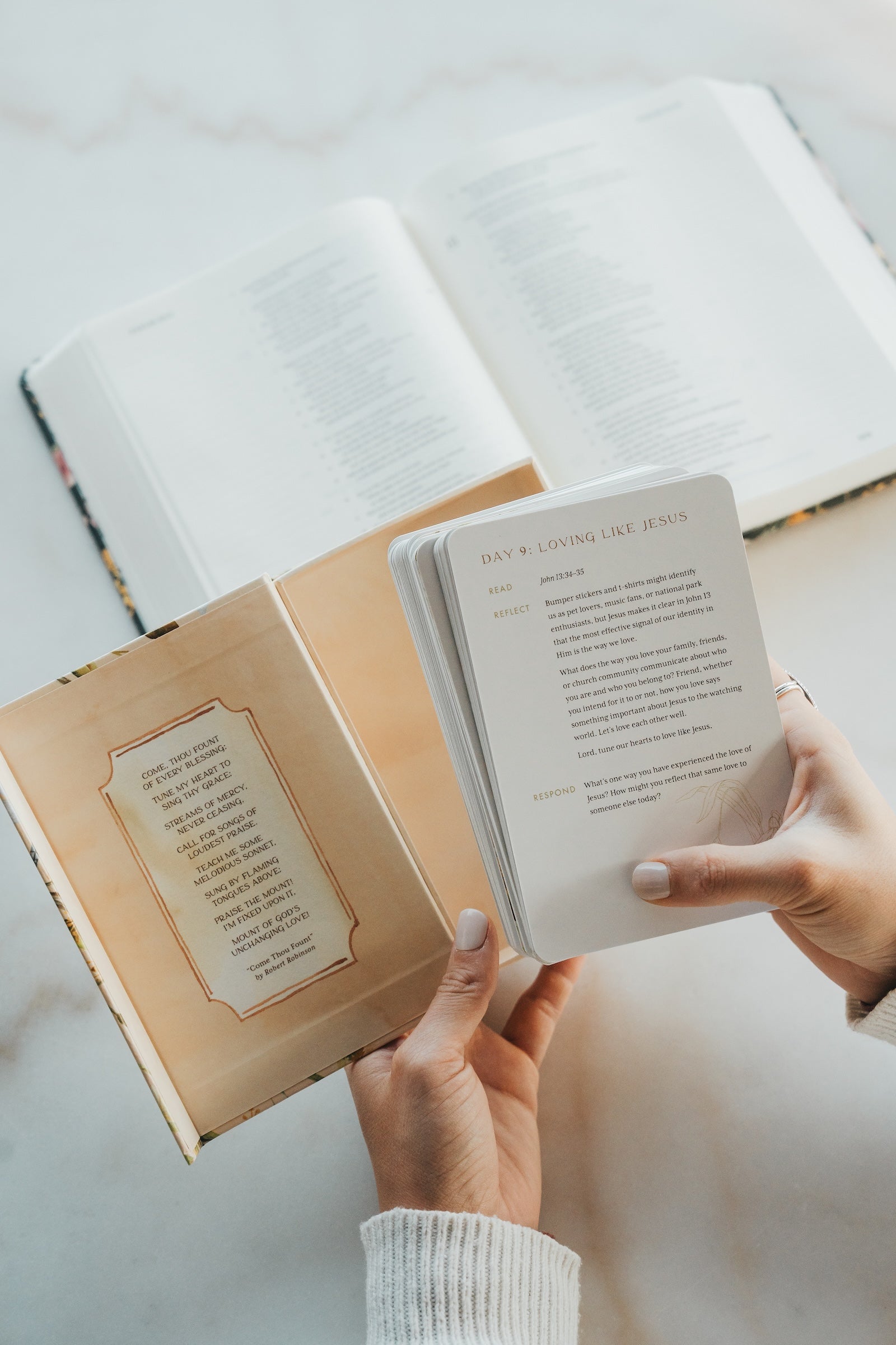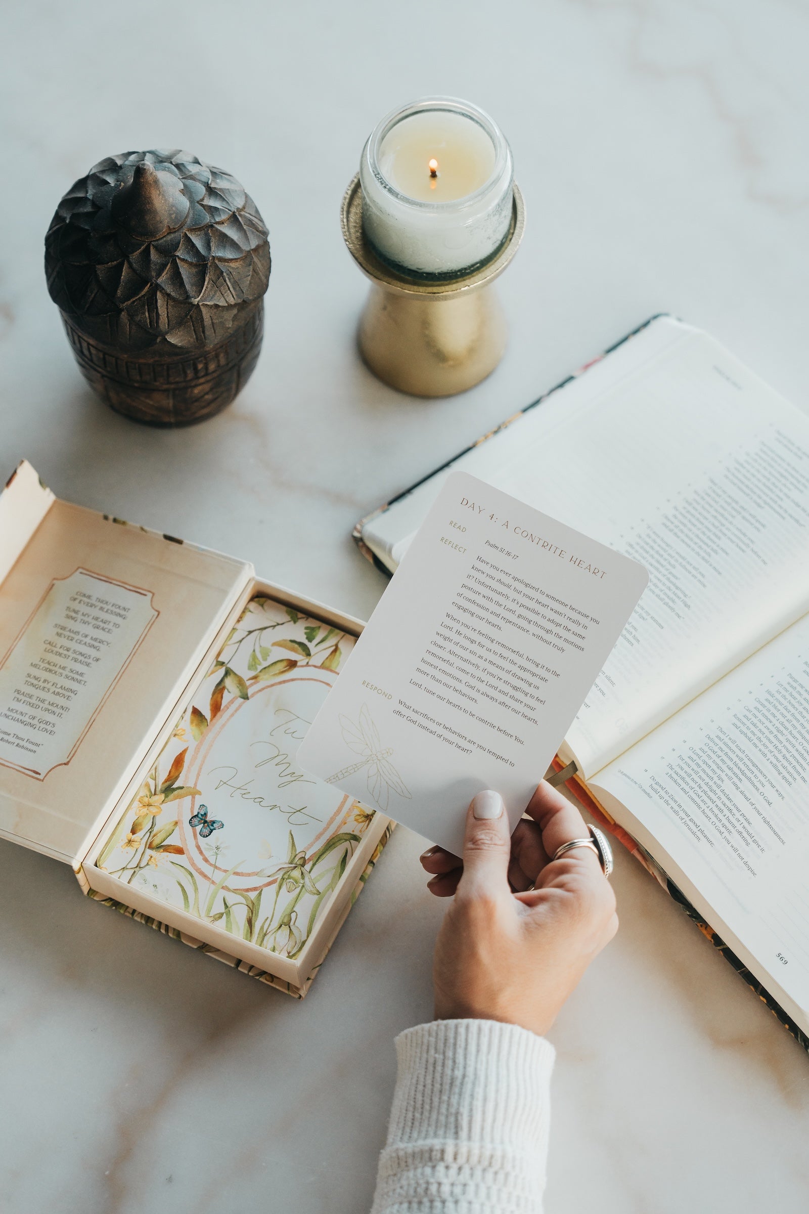 Nestled inside the keepsake storage box, you will find a set of 50 cards (4" x 6") to guide you through Ash Wednesday through Resurrection Sunday of intimately tuning your heart.